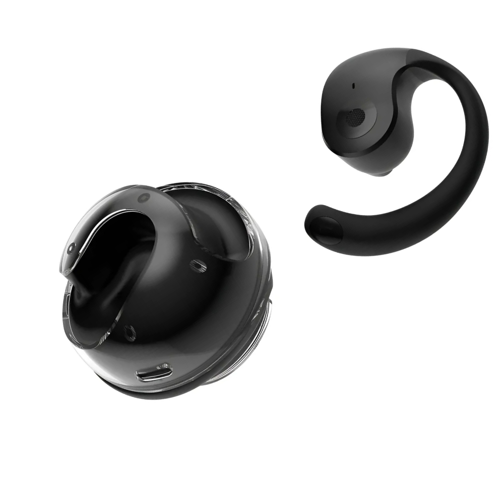 Audifonos con tecnología OWS ( sonido inalambrico de oído abierto) te permiten didtrutar de la musica de forma segura, al mantener los oídos libres, sin ningun tipo de obstrucción. Esto de ayuda a ser conciente del entorno mientras se reproduce la música. Version de bluetooth 5.3. Te presentan un diseño ligero. Auriculares con sensores tactiles multifuncionales. Microfono de alta resolución. La duración de batería es de 4 horas mas 2 cargas adicionales que te brinda su estuche, brindandote hasta 12 horas de reproducción a máximo volumen. Rango de transmisión de 10 metros.