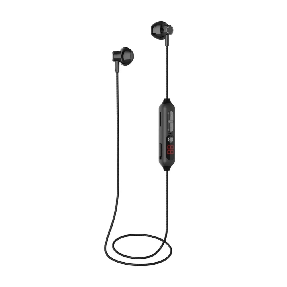 Audifonos bluetooth con pantalla LED incorporada. Posee auriculares con puntas magneticas para mayor seguridad de agarre ideal para tu día a día o para practicar deportes. Contiene Ranura Micro SD y botones funcionales para subir/bajar volumen, anterior/siguente cancion, contestar llamadas. Versión de Bluetooth:5.4. Tiempo de trabajo hasta de 11H . Rango de transmisión:10metros. Cable redondo acordonado. Su caja incluye estuche rigido, cable de carga Tipo C y manual de usuario.