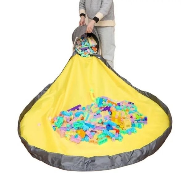 Organizador de almacenamiento de juguetes y alfombrillas de juego, cestas de juguetes grandes, bolsas de almacenamiento de juguetes, lavable, cesta de lona plegable, contenedor de limpieza y almacenamiento de juguetes adecuado para ladrillos de juguete, juguetes pequeños gris.