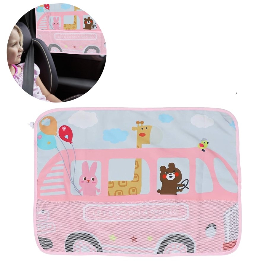 𝟮. Si su hijo quiere observar el paisaje exterior, puede amarrar la tela de sombra completa con la cuerda. La tela de malla proporcionará semi sombra, que bloqueará partes del resplandor del sol y los rayos UV sin afectar la visión de su hijo.