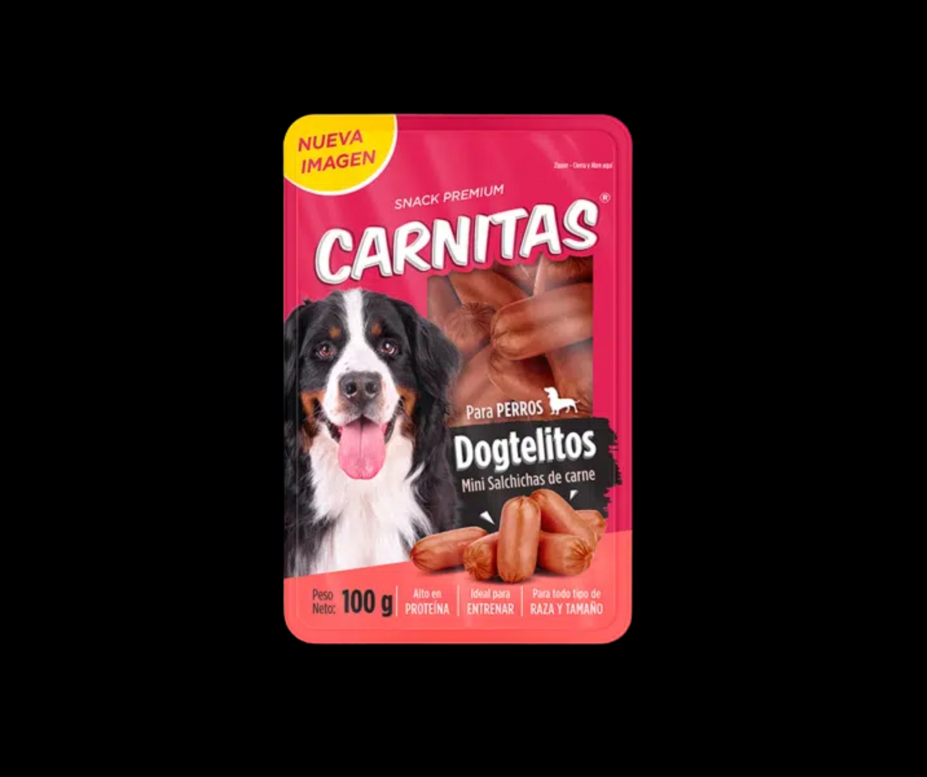 Snack para perro CARNITAS premium tipo Mini Salchichas de carne 250 gr. Ideal para perros de todas las razas, tamaño y edad. Con el 100% de proteínas de origen animal es de fácil digestión. No contiene grasas añadidas. Perfecto para usarse como premio, recompensa o golosina.