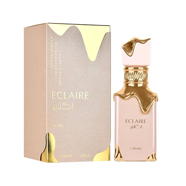 Eclaire de Lattafa Perfumes es una fragancia femenina gourmand y sofisticada que combina dulzura cremosa con delicadeza floral y un toque cálido y sensual. Su salida golosa de caramelo, leche y azúcar cautiva los sentidos, mientras que su corazón de flores blancas y miel aporta suavidad y feminidad. El fondo de vainilla, praliné y almizcle envuelve con calidez y elegancia, dejando una estela duradera y acogedora.