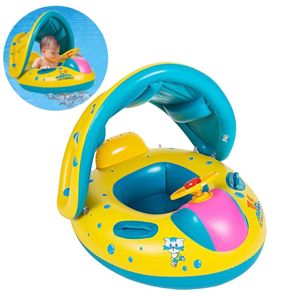 Flotador con techo evita los rayos solares en el cuerpo de tu bebé