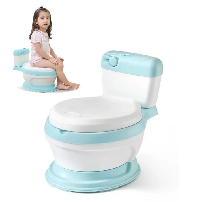 Inodoro de entrenamiento con asiento cómodo para ir al baño con botón de descarga realista para niños pequeños, Tamaño: 45cm*23cm*30cm.