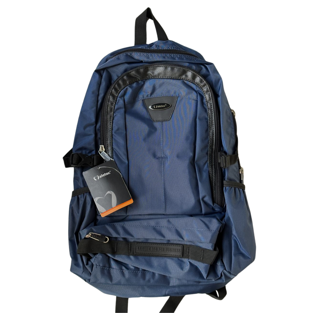 Mochila ergonómica color azul marino, con tirantes acolchados y múltiples compartimentos. Ideal para escuela o trabajo.
