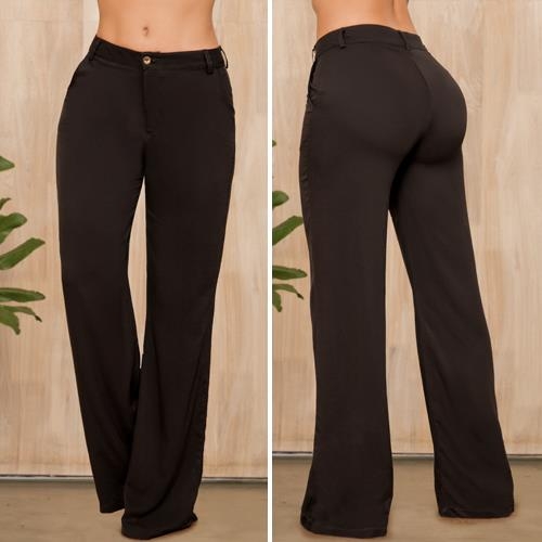 Luce impecable con este pantalón negro de vestir para mujer con corte recto y diseño clásico. Perfecto para la oficina, reuniones o eventos formales, su tela fluida y ligera proporciona comodidad durante todo el día sin perder el estilo.