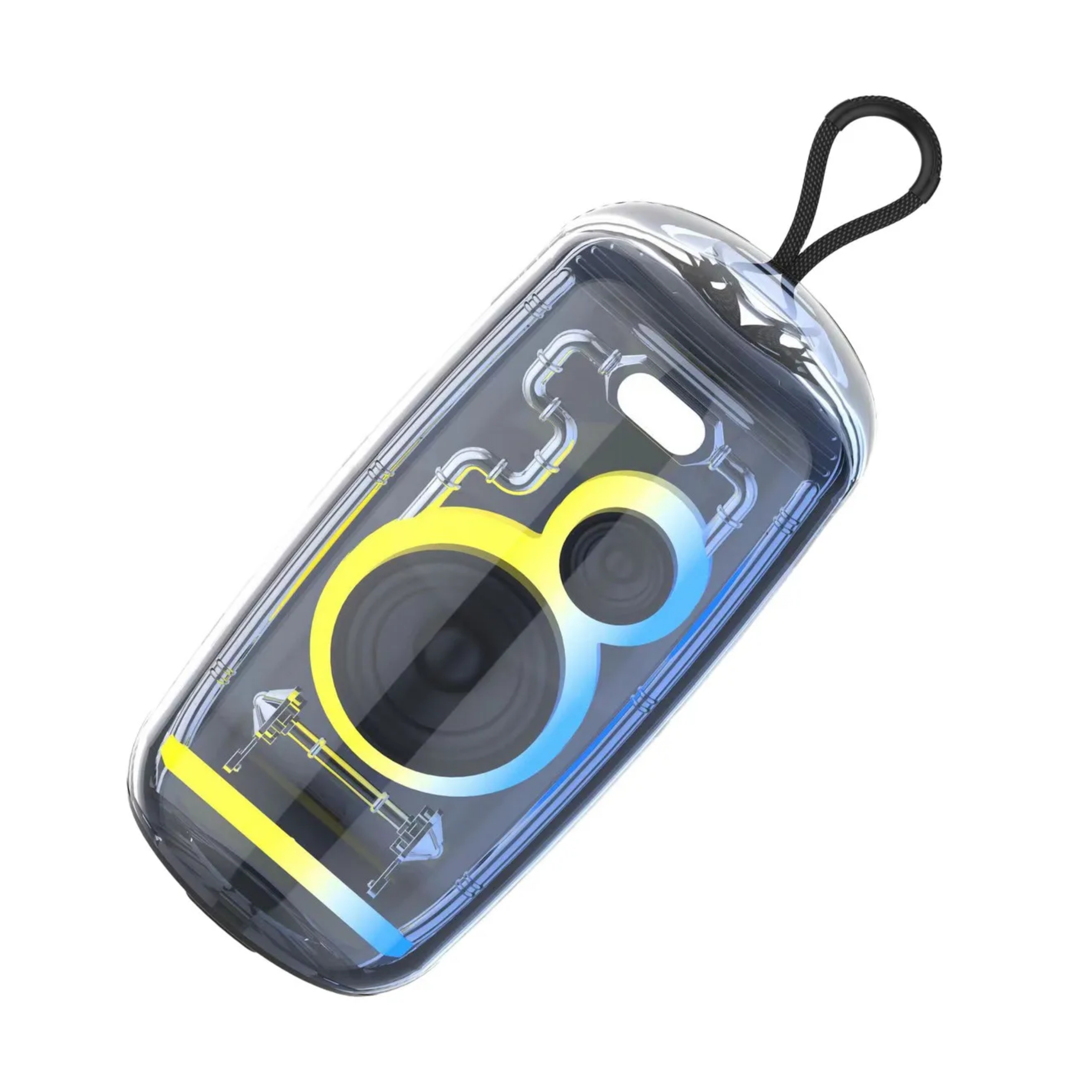 Parlante Portable, Duracion de bateria 2-4 horas. Incluye cuerda sujetadora, manual y cable de carga tipo C. Entrada memoria USB, micro SD y audio auxiliar. Funcion TWS 1+1. Funcion Radio FM. Batería de lones de Litio. Admite formato MP3. Version Bluetooth 5.4. Rango de transmision 10 mtrs