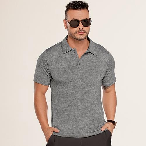 Polo de lycra con efecto flame suave y elástica, de cuello clásico y botonera corta. Su textura jaspeada aporta un look moderno y atemporal, con ajuste cómodo que acompaña el movimiento. Fresco y versátil para llevar con jeans, chinos o shorts en cualquier ocasión.