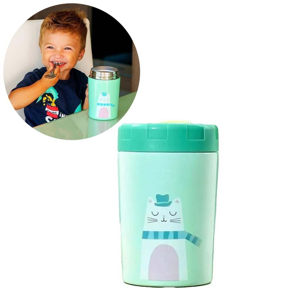 Taza térmica para llevar alimentos calientos o fríos, mantiene la temperatura. Utilizado para loncheras escolares o refrigerios de trabajo : pasta, arroz, sopas, crema o bebidas frias.Termo aislado de acero inoxidable para niños, frasco térmico al vacío para comida caliente con silicona de calidad alimentaria | Peso: 338g |Tamaño: 9,5*15cm | Capacidad: 400ml. Incluye cuchara plegable de acero inoxidable de tamaño completo. Aislamiento de doble pared al vacío, puede mantener los alimentos fríos y calientes durante mucho tiempo. Anillo de silicona de calidad alimentaria, seguro y a prueba de fugas, tamaño pequeño y peso ligero.